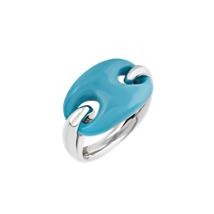 Et Voilà Capriness marine chain ring in silver and hand-engraved turquoise-colored resin