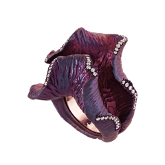 Aqua ring with flowing shapes in titanium, presented in a unique palette with diamonds and 18kt gold details