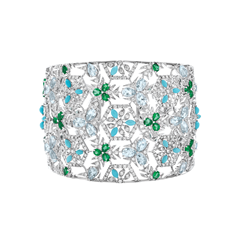 Caleidoscopio bracelet in 18Kt white gold, diamonds, emeralds, aquamarine and turquoise
