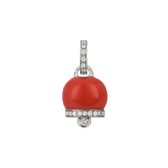 Medium Campanella charm in 18Kt white gold, diamonds and red coral