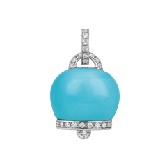Big Campanella charm in 18Kt white gold, diamonds and turquoise