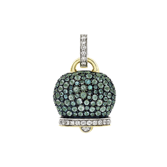 Large Campanella charm in 18Kt yellow-white gold, diamonds and paraiba pavè