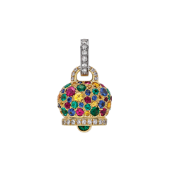 Medium Campanella Mosaico charm in 18Kt yellow and white gold, diamonds and emeralds,rubies, blue sapphires, orange sapphires pavé