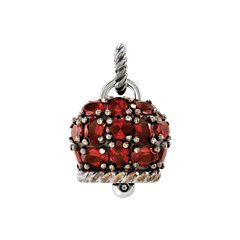 Large Et Voilà Campanella charm, featuring oval-cut ruby red siamite in prong settings, mounted on antiqued silver, with one brilliant-cut diamond