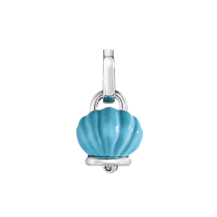Small Et Voilà Campanella Capriness charm in silver with hand-engraved turquoise-colored resin with one brilliant cut diamond