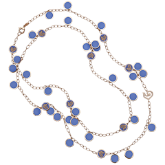Paillettes necklace crafted in 18kt pink gold, diamonds and Capri blue enamel. Lenght 90 cm