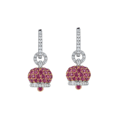 Small Campanella earrings in 18Kt pink and white gold, diamonds and rubies pavé