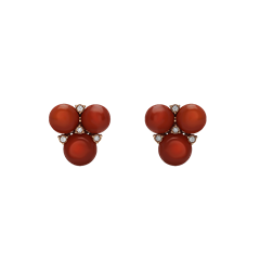 Cherie lobe earrings in 18Kt pink gold, diamonds and red coral.