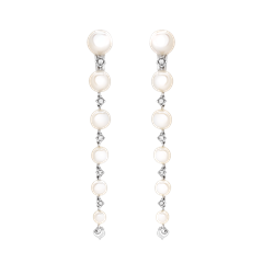 Cherie long drop earrings in 18Kt white gold, diamonds and freshwater pearls.