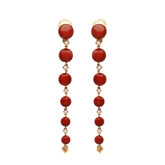 Cherie long drop earrings in 18Kt pink gold, diamonds and red coral.