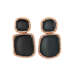 Enchanté short drop earrings in 18Kt pink gold, diamonds and onyx