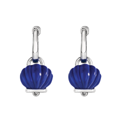 Small Et Voilà Campanella Capriness earrings in silver with hand-engraved lapis lazuli-colored resin with two brilliant cut diamonds