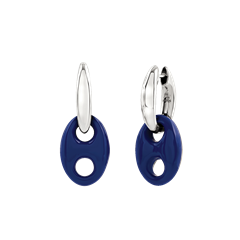 Et Voilà Capriness marine chain earrings in silver and hand-engraved lapis lazuli-colored resin