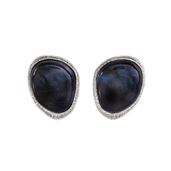Et Voilà Enchanté earrings, hand-engraved and sandblasted, featuring translucent obsidian-colored resin on burnished silver