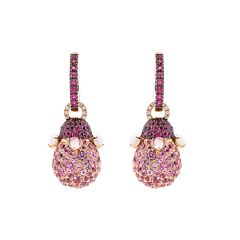 Joyful earrings in 18kt pink gold, pink sapphires, diamonds and rose quartz cabochons