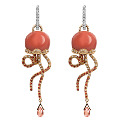 Campanella Jellyfish earrings in 18Kt yellow and white gold, diamonds, orange sapphires and orange coral
