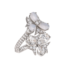 Caleidoscopio contrariè ring in 18Kt white gold, diamonds and milky agate