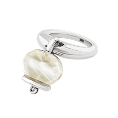 Medium Et Voilà Campanella ring in silver, hand-faceted rock crystal-colored resin and one diamond