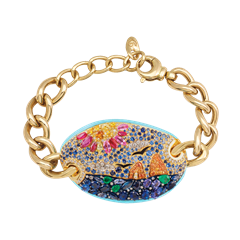 Miniatura Faraglioni bracelet in 18kt yellow gold, diamonds, blue, yellow, pink sapphires, rubies, emeralds, tanzanite, turquoise enamel