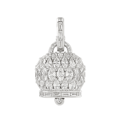 Large Jackie O' Campanella charm in 18Kt white gold and marquise, baguette and brilliant cut diamonds