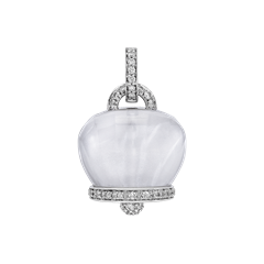Large Campanella Rock Crystal charm in 18Kt white gold, diamonds and hand-faceted rock crystal