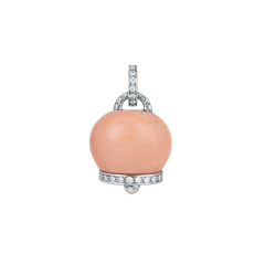 Big Campanella charm in 18Kt white gold, diamonds and pink coral
