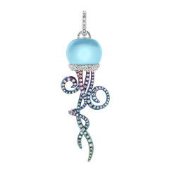 Small Campanella Jellyfish charm in colored titanium, white-yellow gold 18Kt, diamonds and hydrothermal quartz with turquoise