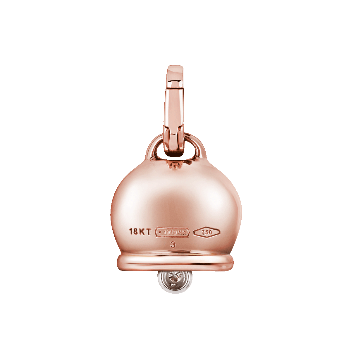 Medium Campanella charm in 18Kt pink gold and one diamond in the clapper