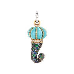 Medium Horn charm in 18Kt yellow gold, sapphires, emeralds, diamonds and frosted turquoise embellished with diamond