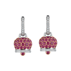 Medium Campanella earrings in 18Kt pink and white gold, diamonds and rubies pavé