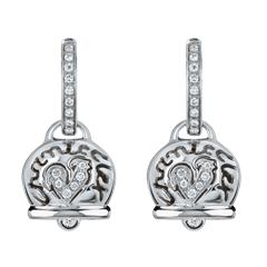 Medium Campanella earrings in 18Kt white gold, diamonds and rooster in diamonds pavé
