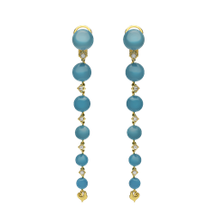 Cherie long drop earrings in 18Kt yellow gold, diamonds and turquoise.