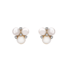Cherie lobe earrings in 18Kt white gold, diamonds and freshwater pearls.