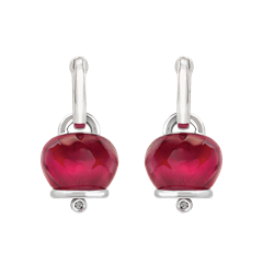 Medium Et Voilà Campanella earrings in silver, hand-faceted burgundy-colored resin and two diamonds