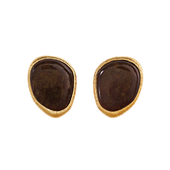 Et Voilà Enchanté gilt silver earrings, hand-engraved and sandblasted, with honey-colored resin