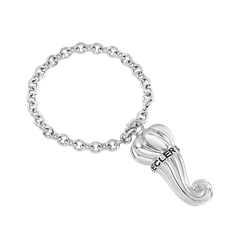 Large Et Voilà Horn keychain in silver with one brilliant cut diamond
